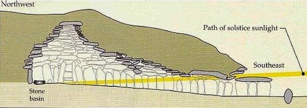 The images below show the huge amount of effort that the ancient Celtic peoples of Ireland made to create a structure that would allow the weakest rays of the sun to be carefully caught in a stone basin at mid-winter. We don’t know what rite they performed with the sunlight that they had “caught,” but we know that the intention of the structure and the festival was to ensure that the sun would change course from its dying descent and turn to grow strong again.