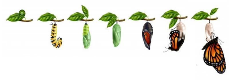 In the plant, the leaves shrink as the flower bud forms. Then, with the bursting forth of the flower, we see even more clearly the true nature of the plant that the leaf could never re-veal. If we didn’t know the flower was coming, we would only see the shrinking of the leaves and think the plant was dying! Likewise, the caterpillar that knows its time is coming to a close builds its own tomb of transformation – trusting to the metamorphosis that will take place there, feeling the butterfly waiting to become.
