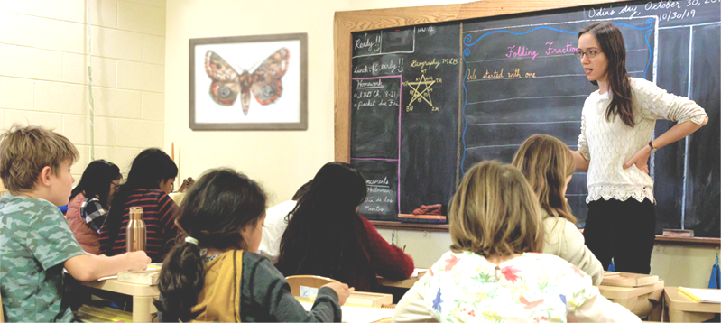 Evangeline Wolfe, BACWTT graduate, with her 4th grade class, Berkeley Rose Waldorf School.